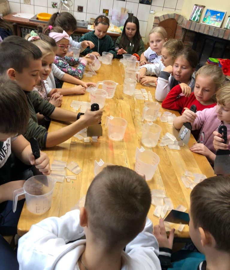Na podsumowanie tematyki zwyczajów swojego regionu uczniowie pojechali na wycieczkę do Podedwórza – do Centrum Edukacji Regionalnej „Kraina Rumianku”, gdzie mogli nauczyć się piec rogaliki, wykonywać mydełka glicerynowe oraz poznawać dawne zwyczaje i tradycje regionu lubelskiego takie jak: pranie na tarze, koszenie kosą, młócenie zboża i mielenie go w żarnach. Przekonali się na żywo jak ważne są tradycje regionalne i aktywność twórcza.