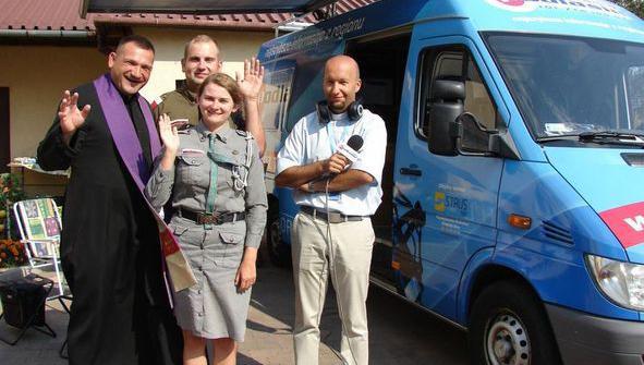 Przedstawiciele Harcerskiej Grupy Szarej 1B 9 sierpnia w Studiu Pielgrzyma. Mówili o ich niedużej, ale bardzo mocnej grupie, zwyczajach, które u nich panują oraz o harcerskiej służbie.