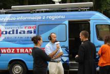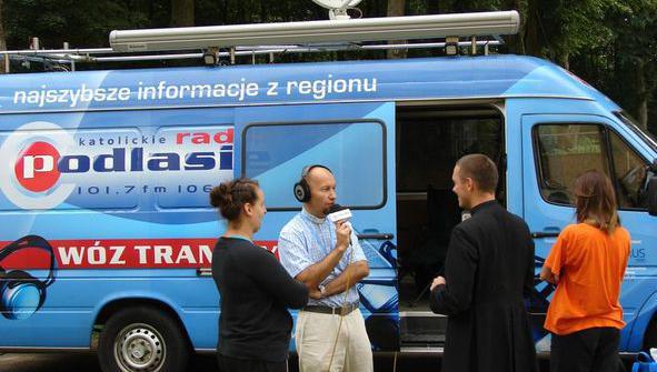 Pątniczki Karolina, Paulina oraz ks. Marcin - przewodnik grupy 16 z Parczewa i okolic, w porannym studiu pielgrzyma na antenie Radia Podlasie opowiadali o motywach, radościach i trudach pielgrzymowania. Grupa nocowała w Sobieszynie. 4 sierpnia miała do pokonania 20 kilometrów z Sobieszyna do Osin.