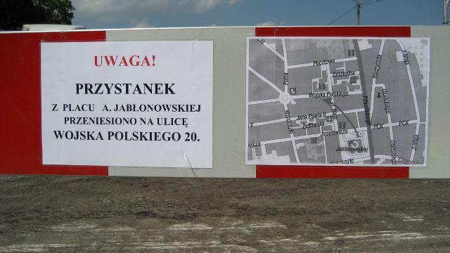 Została także zdjęta kostka brukowa i asfalt w miesjscu dawnego przystanku PKS. Obecnie przystanek PKS został na czas przebudowy przeniesiony się na ulicę Wojska Polskiego.