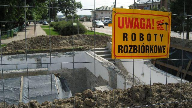 Wyburzono również dawny szalet miejski, a obecnie trwa budowa nowego.