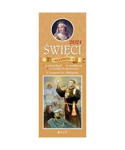 Święci orędownicy, nasi patroni, wspierający nas modlitwą w troskach, cierpieniach i chorobach. W każdym tygodniu przybliżamy jedną sylwetkę świętego orędownika: wymieniamy choroby, którym zapobiega jego wstawiennictwo, sprawy, zawody, miasta i regiony, którym patronuje. Prezentację dopełnia krótki życiorys oraz modlitwa za jego przyczyną. W kalendarzu na rok 2021 zamieściliśmy też recepty na zdrowie, autorstwa św. Hildegardy z Bingen.