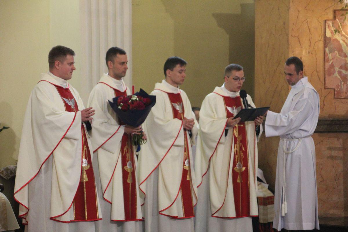 Tuż przed uroczystą Mszą Świętą, ks. Dariusz Kucharek, ojciec duchowny WSD w Drohiczynie przedstawił postaci kandydatów do święceń kapłańskich, prosząc wszystkich o modlitwę w intencji przyszłych kapłanów oraz drohiczyńskiego Seminarium, biskupów i całej diecezji. Zebranych witał proboszcz parafii katedralnej ks. Wiesław Niemyjski. – Gromadzimy się w katerze drohiczyńskiej, aby ogarnąć modlitwą tych, którzy za chwilę przyjmą świecenia prezbiteratu. Wspomniał postać patrona roku – Św. Józefa i polecał opiece świętego kandydatów do kapłaństwa, by pomagał im żyć Ewangelią, głosić Ewangelię i sprawować posługę sakramentalną.