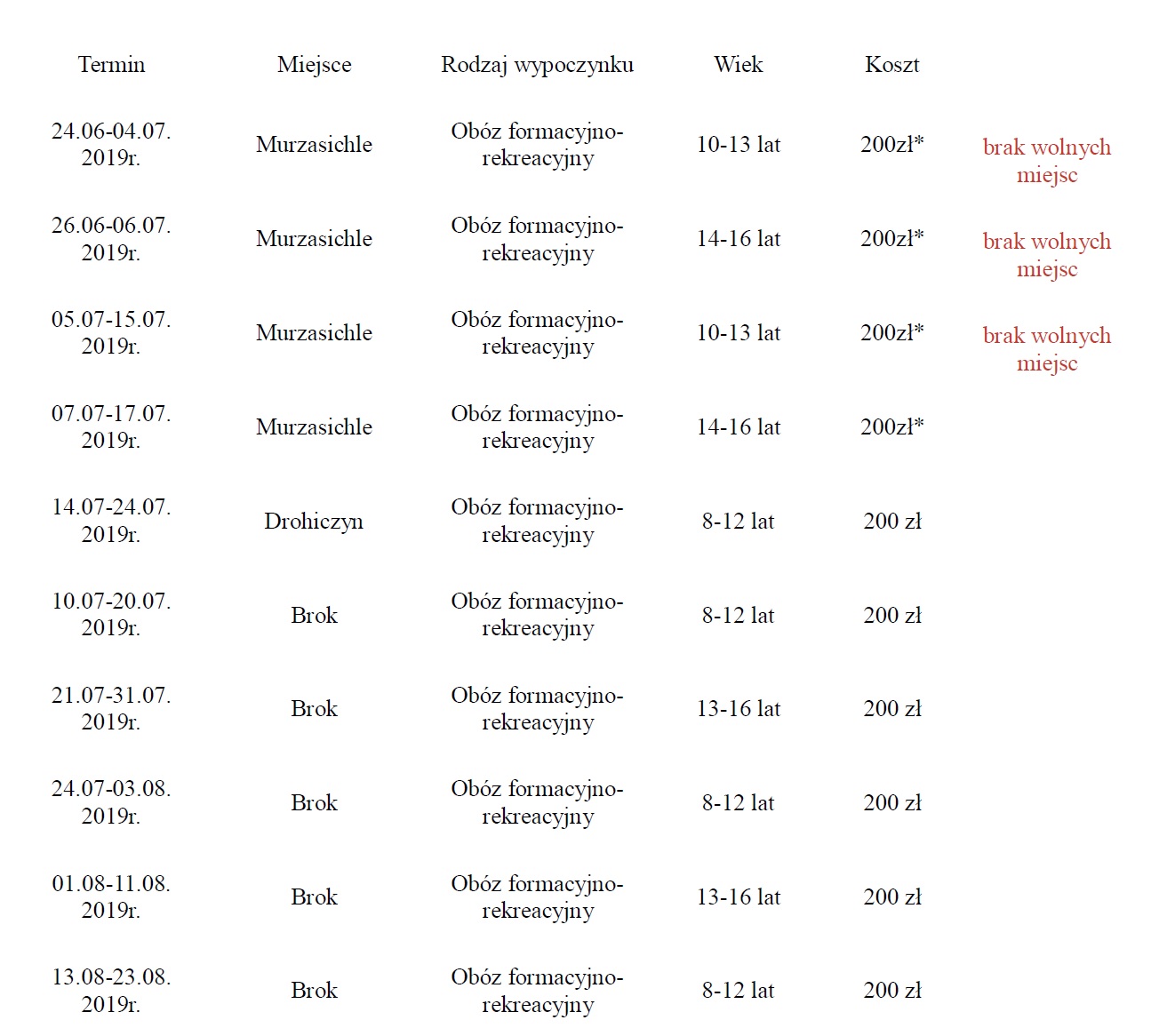 Dodatkową opłatę wnoszą uczestnicy jadący an obozy w góry. Szczegóły na stronie http://www.ksm-drohiczyn.pl/56/wakacje-2019-dof-przez-fsusr-2
