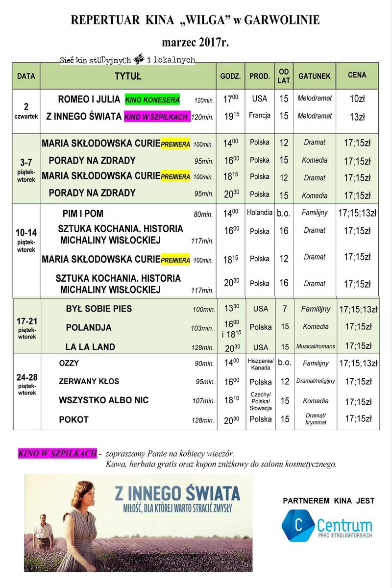 Repertuar kina „WILGA” w Garwolinie /MARZEC/