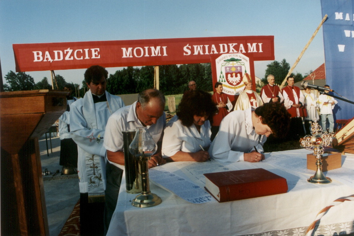 W dniach 24-31 maja 1998 r. w parafii były prowadzone Misje Ewangelizacyjne. Prowadzili je ks. Sylwester Ługowski oraz ks. Roman Wiszniewski. Misjonarze byli wyjątkowi, ponieważ po pieśni na zakończenie Mszy św. ludzie nie chcieli wychodzić z kościoła oczekując jeszcze na dodatkowe słowo. W trakcie Misji 29 maja 1998 r. został wmurowany kamień węgielny. Tę posługę spełnił bp Henryk Tomasik, w zastępstwie ówczesnego ordynariusza biskupa Jana Wiktora Nowaka.