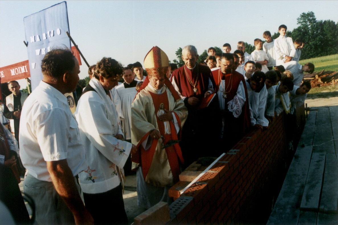 W dniach 13-20 kwietnia 1998 r. w celu przywiezienia kamienia węgielnego wyruszyła pielgrzymka do Rzymu pod przewodnictwem katechetki Grażyny Pogorzelskiej. Jej uczestnikami byli: kleryk Marcin Olek, Jacek Pogorzelski i Tomasz Pawlak uczeń LO (wyświęcony na księdza w 2006 r.).