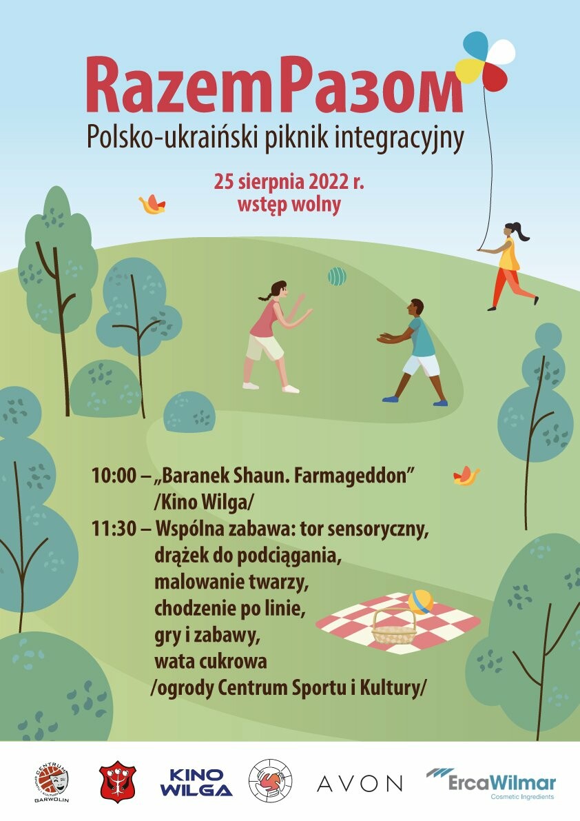 Центр Спорту і Культури м. Гарволін і Уженд міста сердечно запрошують на польсько-український інтеграційний пікнік під гаслом „Разом!” Захід відбудеться 25 серпня (четвер). Об 10.00 в кінотеатрі „Вільга” буде демонструватися мультиплікаційний фільм „Баранчик Шон. Фармагедон”. З 11.30 до 14.00 на території внутрішнього дворику Центру Спорту і Культури (вул. Надводна, 1, вхід з рекреації кінотеатру), будуть проводитися конкурси та забави. В програмі: ігри, смуга перешкод, спортивні змагання, аквагрим. Для дітей частування цукровою ватою. Кіно і всі розваги безкоштовні.