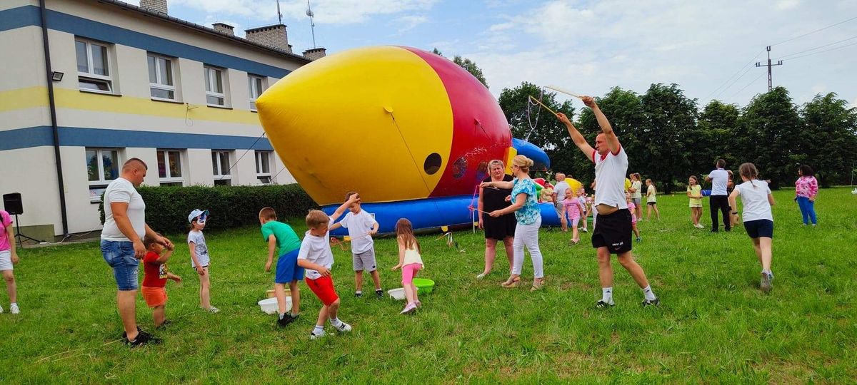 Następnie uczestnicy wydarzenia przenieśli się na boisko szkolne, gdzie na dzieci czekały zjeżdżalnie, loteria fantowa, malowanie twarzy, plecenie warkoczyków, modelowanie balonów, tatuaże i bańki mydlane. Wśród atrakcji przygotowanych dla dzieci nie zabrakło również rozgrywek i zawodów sportowych. Dla rodziców, ich pociech oraz wszystkich obecnych przygotowane były potrawy z grilla, ciasto, wata cukrowa i popcorn. Każdy mógł znaleźć dla siebie coś interesującego. Atrakcje zorganizowane tego dnia dały wiele radości. Jak podkreślają organizatorzy, ten dzień był świetnym pomysłem na wspólne spędzenie czasu, integrację społeczności szkolnej oraz każdej rodziny.