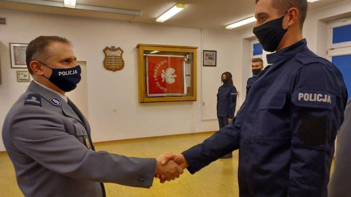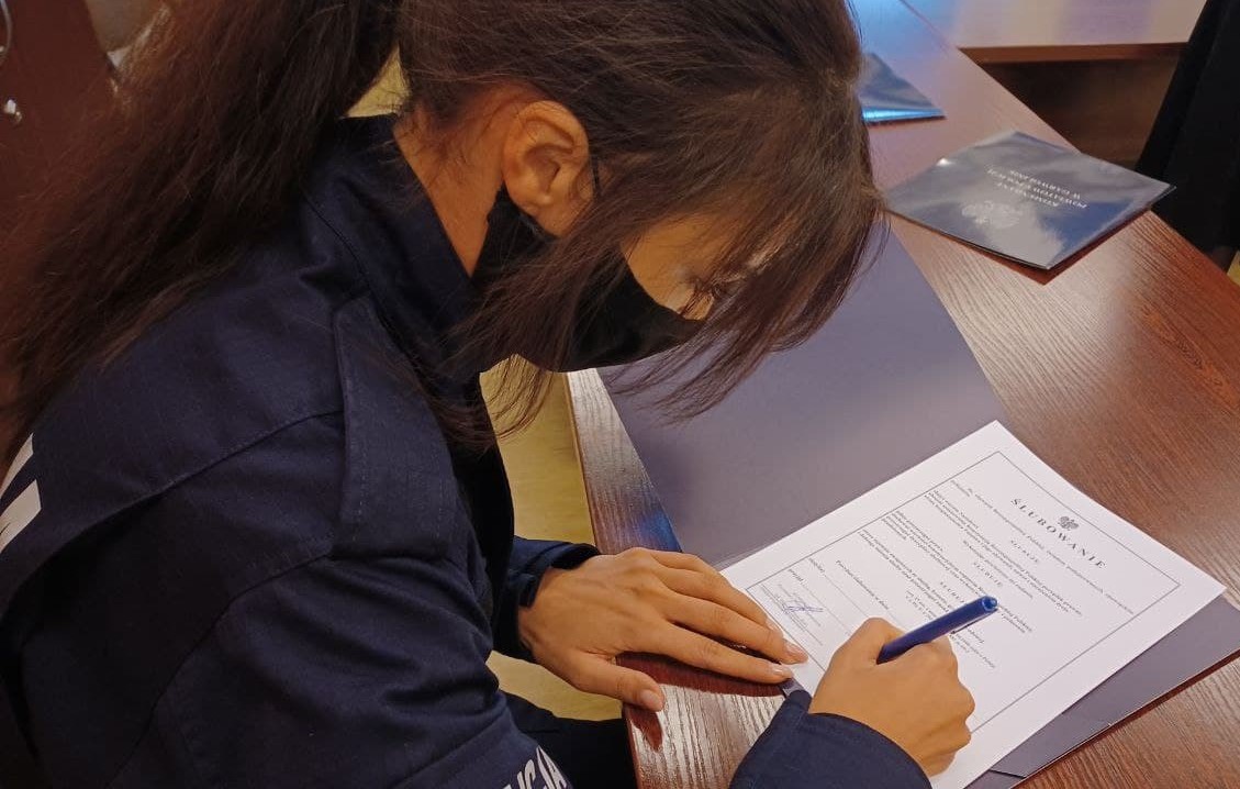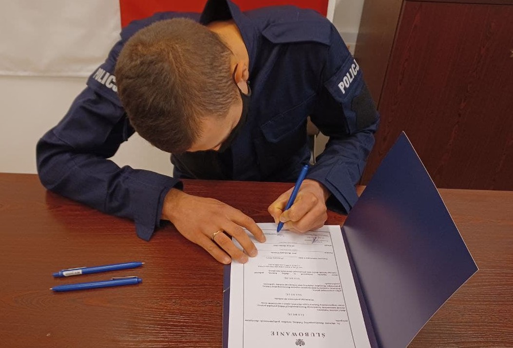 „Ja, obywatel Rzeczypospolitej Polskiej, świadom podejmowanych obowiązków policjanta, ślubuję służyć wiernie Narodowi, chronić ustanowiony Konstytucją Rzeczypospolitej Polskiej porządek prawny, strzec bezpieczeństwa Państwa i jego obywateli, nawet z narażeniem życia (…)”. Od dzisiaj te słowa będą na co dzień towarzyszyły nowo przyjętym policjantom.