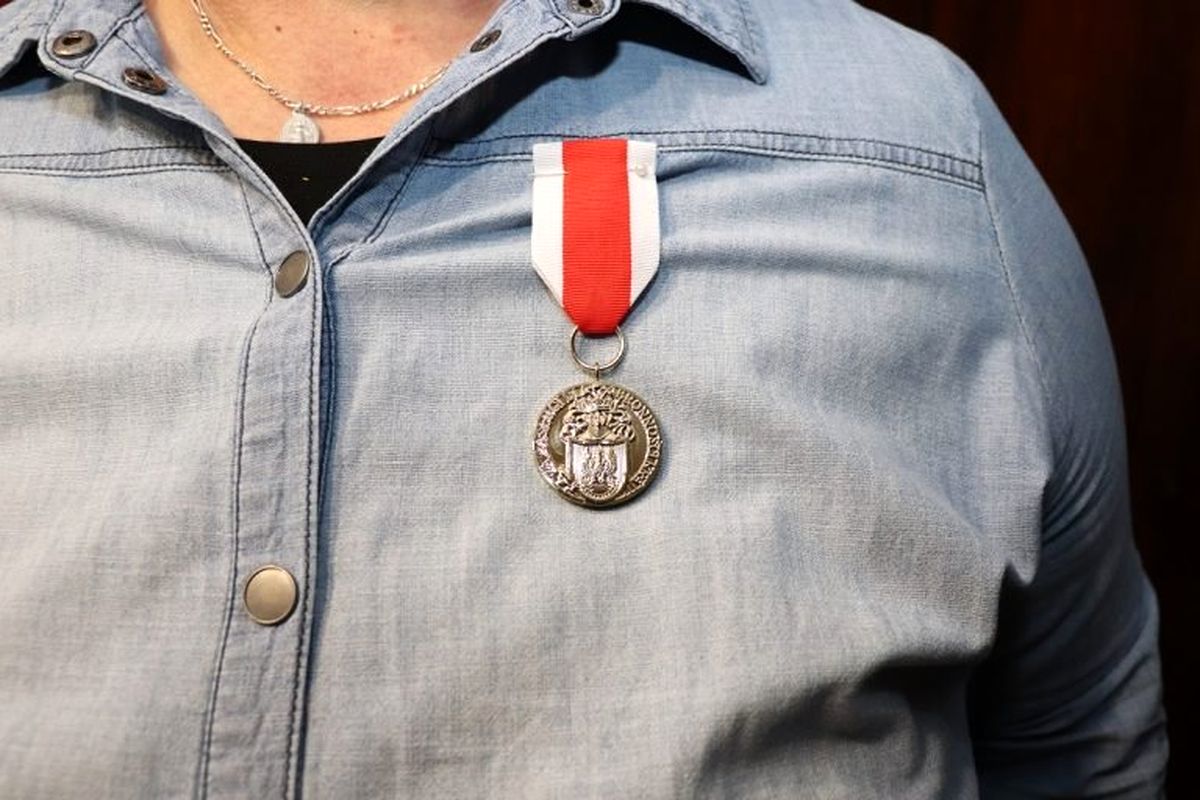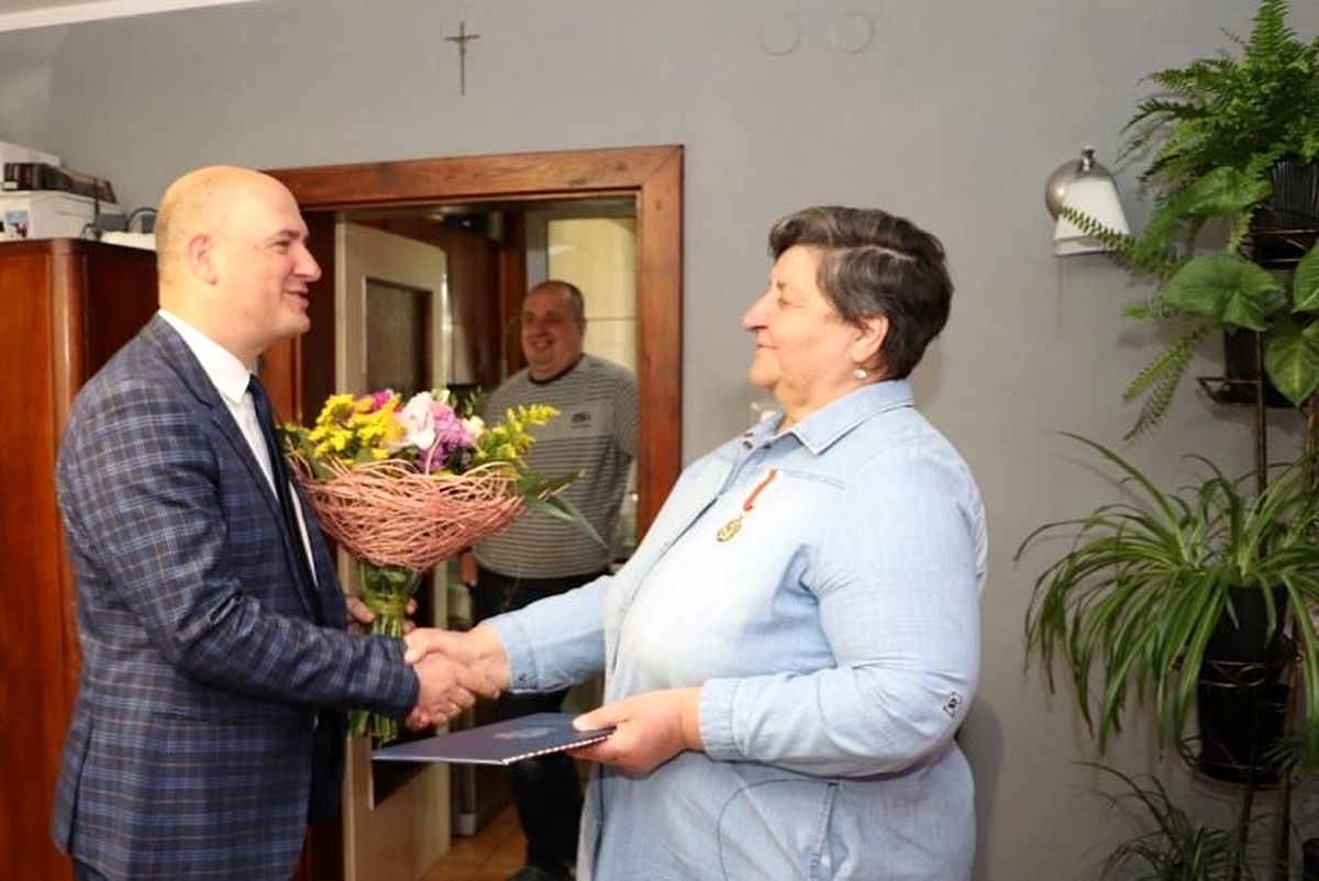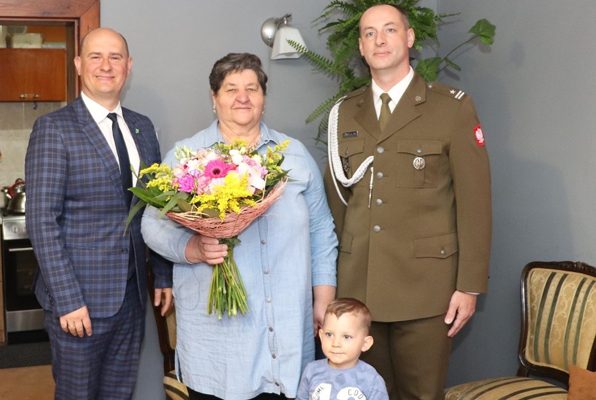 Wójt Gminy Garwolin Marcin Kołodziejczyk wraz z mjr Norbertem Dźwigulskim z Wojskowego Centrum Rekrutacji wręczyli mieszkance gminy Garwolin Henryce Lasockiej Złoty Medal za Zasługi dla Obronności Kraju.