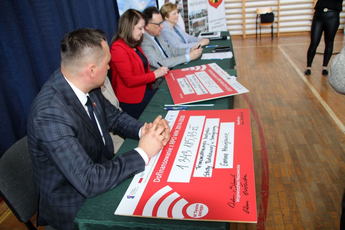 Umowę jednak podpisali marszałek Adam Struzik oraz członkinie zarządu województwa mazowieckiego Elżbieta Lanc i Janina Ewa Orzełowska, beneficjent, czyli Wody Polskie zrobią to z pewnością w innym terminie. - To jest kolejne 27 mln zł na dokończenie obwałowania prawego brzegu Wisły w obrębie gminy Maciejowice. Ten wał chroni dolinę Maciejowicką, dolinę środkowej Wisły, wiadomo, że to jest taki obszar zalewowy i przy wysokim poziomie wód, teren jest bardzo zagrożony, w związku z tym od kilkunastu lat trwa projektowanie i realizacja tego obwałowania. Drugi projekt łączy się z pierwszym, bo dotyczy termomodernizacji szkoły, a to oznacza, że walczymy ze zmianami klimatycznymi...- zaznacza marszałek Struzik.