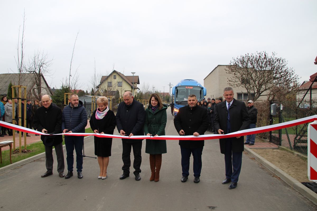 Po przekazaniu autobusów, uczestnicy uroczystości przejechali nimi na osiedle Wrzosowa, gdzie oficjalnie oddano do użytkowania ulice Wrzosową i Różaną, zrealizowanych w ramach Programu Rozwoju Obszarów Wiejskich na lata 2014-2020. W ramach zadania wybudowano 468 mb ulic, na obu ulicach wybudowana została kanalizacja deszczowa. Dodatkowo na ul. Różanej wybudowanych zostało 340mb ciągu pieszo- rowerowego oraz chodniki o łącznej powierzchni 1077 metrów kwadrat. oraz nowe oświetlenie uliczne. Łączna wartość całego zadania stanowi kwotę 1 470 926 zł, a dofinansowanie ze środków UE wynosiło 63,63% kosztów kwalifikowanych i stanowiło kwotę 673 859 zł. Pozostała kwota pochodziła z budżetu gminy.