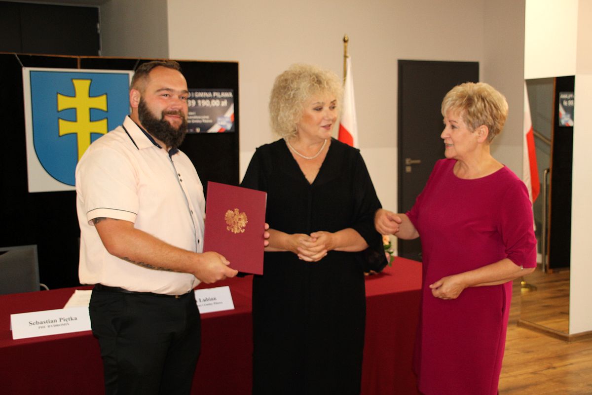 Uroczyste podpisanie umowy „ na budowę sieci wodno- kanalizacyjnej na terenie gminy Pilawa” miało miejsce w Miejsko- Gminnym Ośrodku Kultury. - Zadanie będzie realizowane dzięki środkom pozyskanym z Polskiego Ładu. Otrzymaliśmy na to zadanie ponad 5,3 mln zł, wartość zadania z przetargu, to kwota ponad 6,4 mln zł. Dzięki tym środkom i podpisanej dzisiaj umowie, zrealizujemy siec wodno- kanalizacyjną w Lipówkach na nowych osiedlach i na Zaszosiu, które już tak długo czeka na budowę sieci kanalizacyjnej, której nie można było uzgodnić ze względu na budowę „siedemnastki”- mówi burmistrz Albina Łubian. Wykonawcą robót będzie PHU „Hydromix”, która to firma wkrótce rozpocznie roboty, które powinny być ukończone do końca października 2023 roku. W ramach zadania wybudowane będzie blisko 2500mb sieci wodociągowej, prawie 8000mb sieci kanalizacyjnej, w tym sieć kanalizacji grawitacyjnej i ciśnieniowej. Po wybudowaniu doprowadzona będzie też podobna trasa do Puznówki...