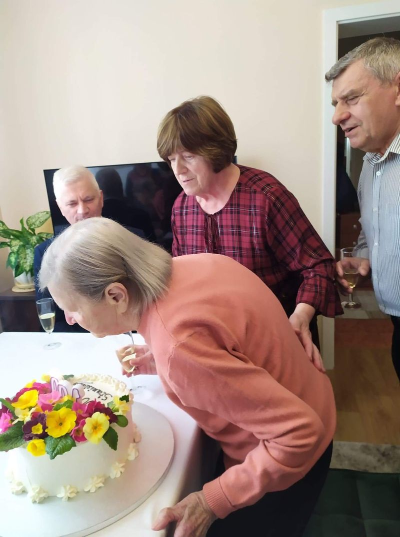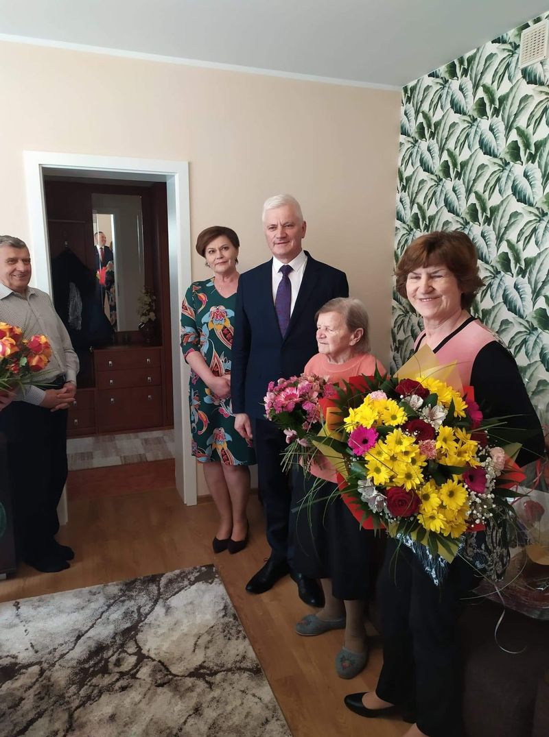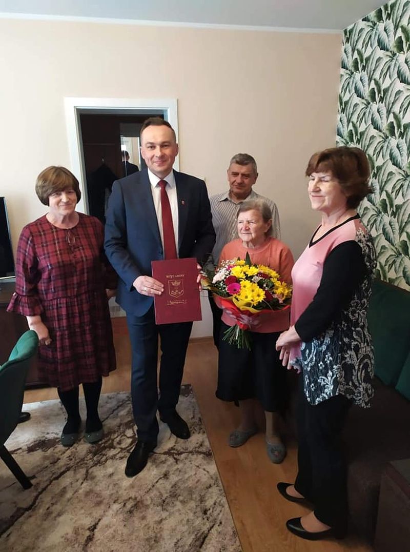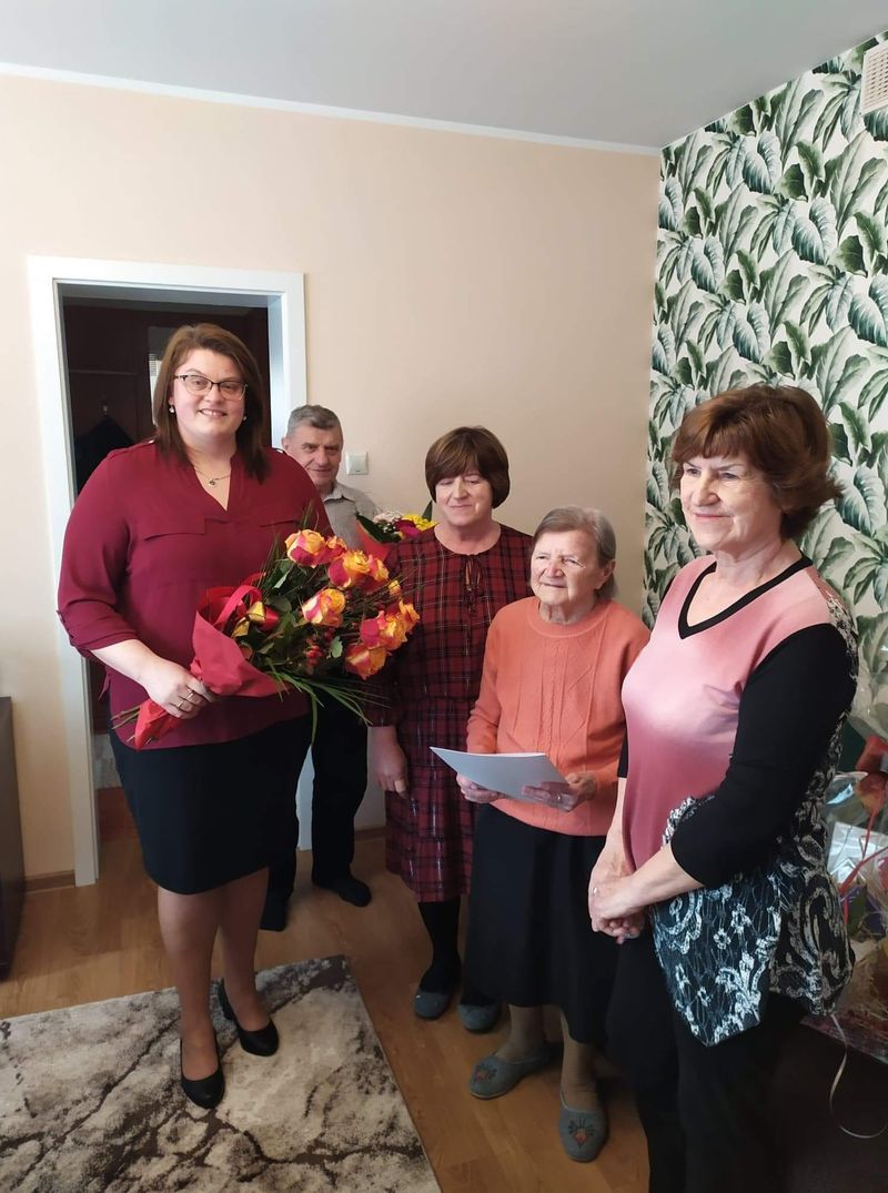 W spotkaniu uczestniczyły kierownik  Wydziału Emerytalno- Rentowego Inspektoratu ZUS Maria Mucha, kierownik USC w Maciejowicach Joanna Szymborska i kierownik GOPS Danuta Wojciechowska, rodzina jubilatki.