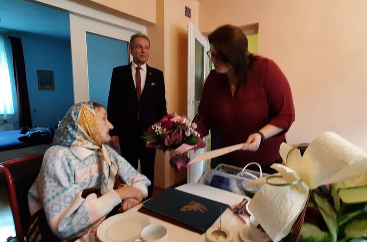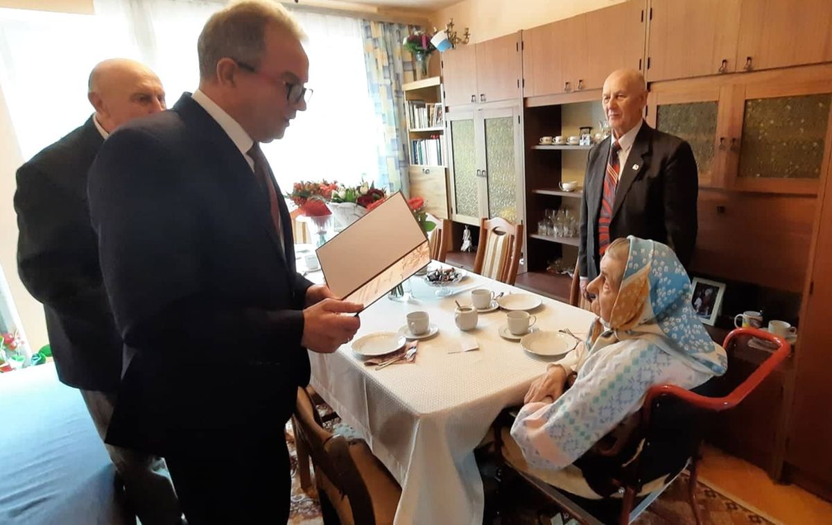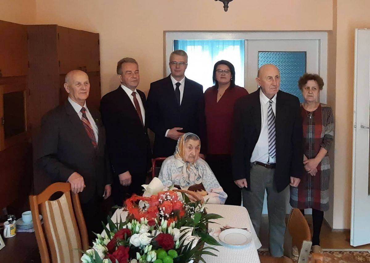 Stuletnią mieszkankę gminy odwiedzili wójt gminy Stanisław Kostyra i przewodniczący rady Jacek Ryszkowski, którzy oprócz życzeń przekazali Pani Mariannie bukiet kwiatów, koc i słodkości. -  Dane było Pani przeżyć cały wiek naszej polskiej historii, doświadczyć jej wzlotów i upadków. Niech mi zatem będzie wolno podziękować Pani za wszelkie trudy i owoce minionych lat. A w tym pięknym dniu 100-lecia Pani urodzin proszę przyjąć moje gratulacje oraz życzenia wszelkiej pomyślności, zdrowia i pogody ducha na dalsze lata- winszował przewodniczący Ryszkowski, a wójt Kostyra podkreślał, że Pani Marianna jest wyjątkową osobą, bo ludzi, którzy doczekali tak pięknego jubileuszu jest niewielu.  Kierownik siedleckiej delegatury Mazowieckiego Urzędu Wojewódzkiego Anna Kaszuba podarowała pani Mariannie wiązankę kwiatów oraz przekazała życzenia od premiera rządu Mateusza Morawieckiego. -  Jest to okazja niecodzienna i niezwykle doniosła. 100 lat to czas, w którym zebrać można mnóstwo doświadczeń i mądrości, przeżyć wiele wspaniałych chwil szczęścia i niezmierzonej radości, a także doświadczyć trudów i radości z nim związanych - życzyła kierownik Kaszuba.