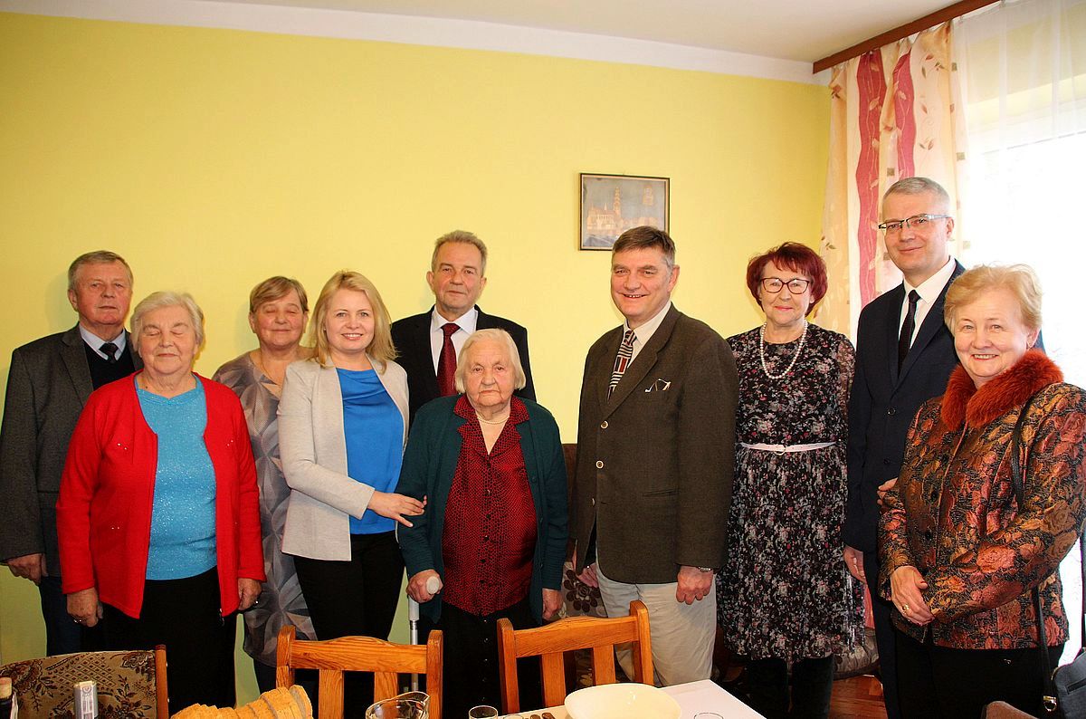 Jubileuszowe świętowanie rozpoczęło się Mszą św. odprawioną w intencji pani Janiny w kościele parafialnym w Korytnicy. 31 stycznia odwiedzili ją w rodzinnym domu włodarze gminy Trojanów z wójtem Stanisławem Kostyrą, przewodniczącym Rady Gminy Jackiem Ryszkowskim i wiceprzewodniczącą Anną Mądrą oraz kierownik Placówki Terenowej Kasy Rolniczego Ubezpieczenia Społecznego w Garwolinie Andrzej Koszutski. Samorządowcy, oprócz życzeń, przekazali jubilatce kosz ze słodkościami i bukiet kwiatów, a wiceprzewodnicząca Anna Mądra odczytała wiersz, który specjalnie na tą wyjątkową i piękną okoliczność napisała. Oprócz powinszowań od kierownictwa KRUS, kierownik Koszutski przekazał Janinie Olek decyzję przyznającą specjalny dodatek do emerytury. - Byłam zawsze wesoła, zawsze było mi dobrze, ja sobie radziłam w życiu- powiedziała naszej rozgłośni jubilatka.