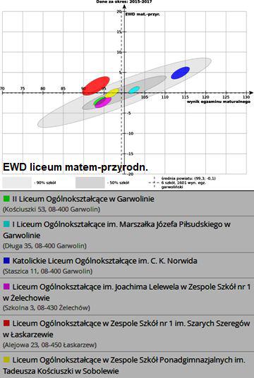 techników i liceów oraz tabelę z oceną każdej szkoły z terenu powiatu garwolińskiego.