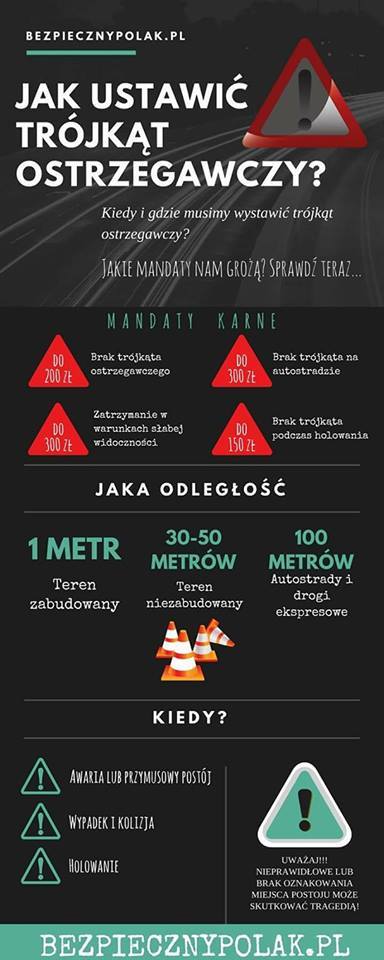 Obowiązkowym i niezwykle ważnym jest wystawianie trójkąta ostrzegawczego na autostradach i drogach ekspresowych, gdzie prędkości, a co za tym idzie drogi hamowania są dosyć znaczne. Pamiętaj, aby po ustawieniu trójkąta i założeniu kamizelki odblaskowej przejść za barierki energochłonne.