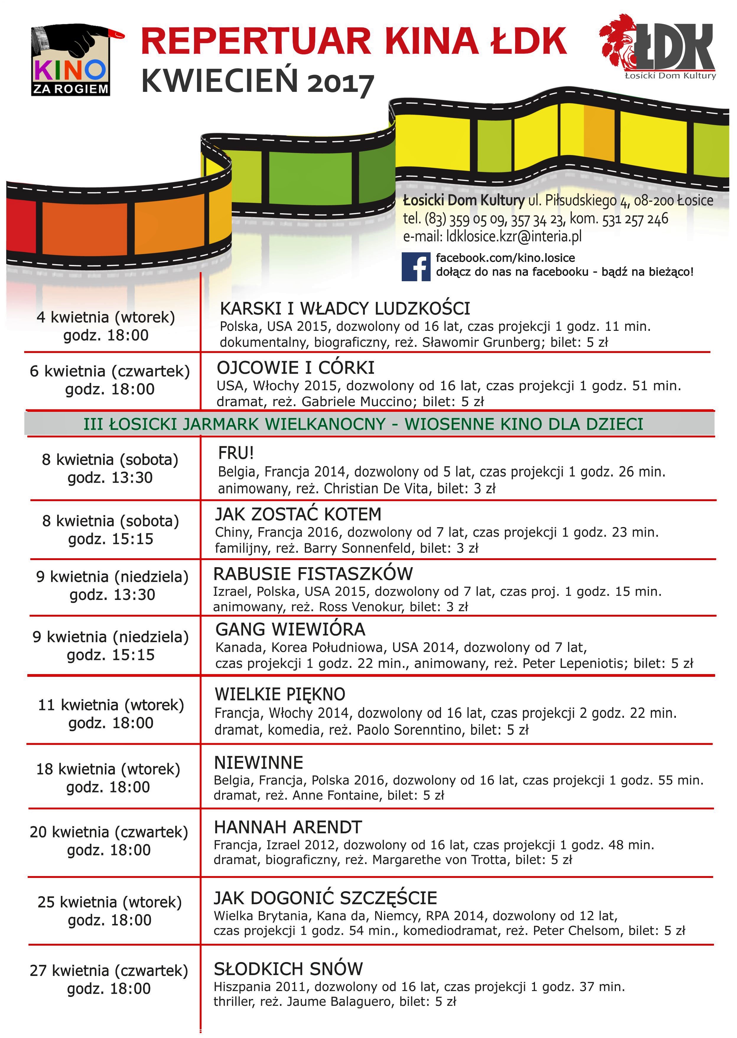 Łosicki Dom Kultury przedstawia repertuar kina na obecny kwiecień. Pierwszy film „Karski i Władcy Ludzkości” zostanie wyświetlony już jutro, 4 kwietnia.