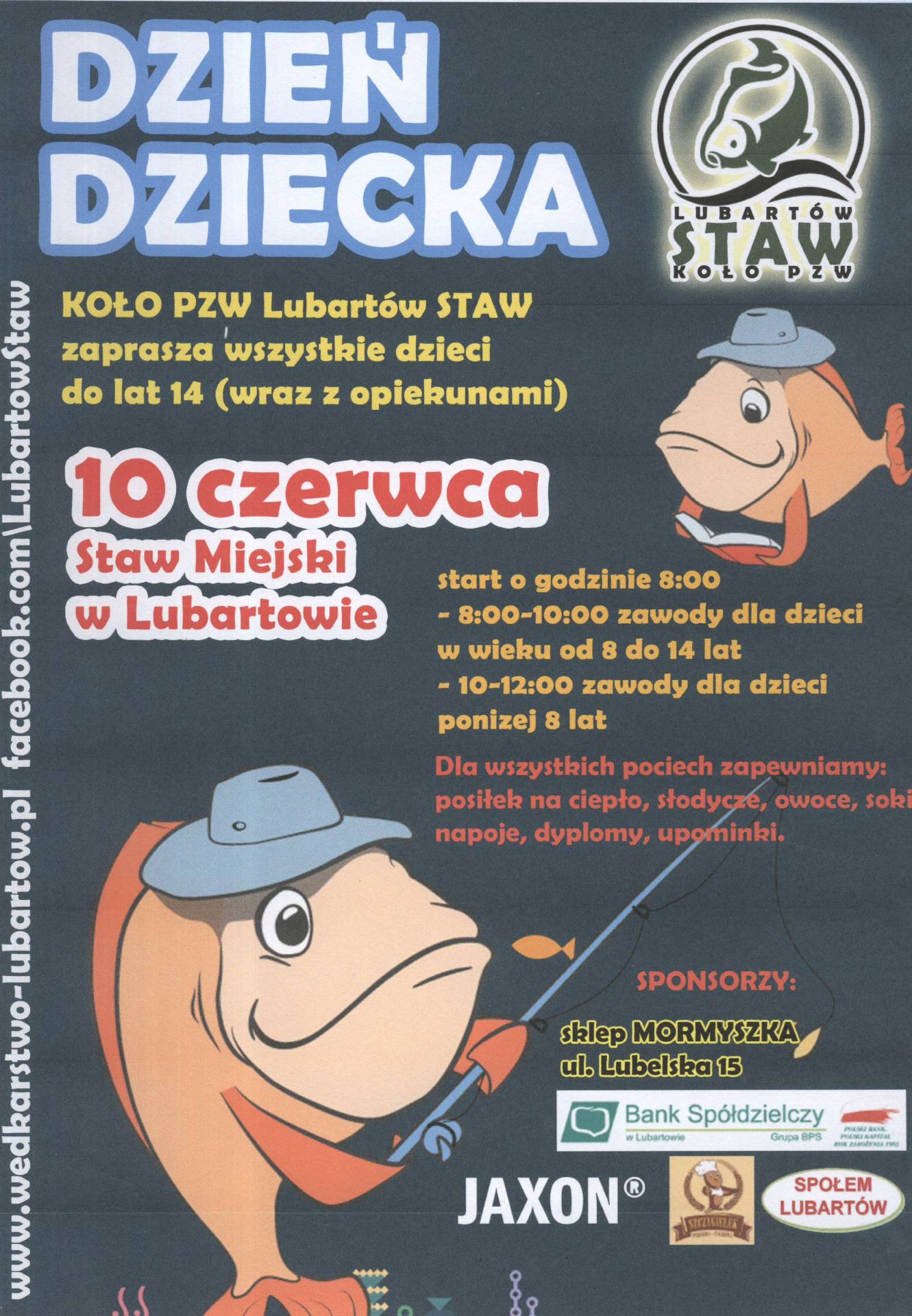 Koło PZW Lubartów Staw zaprasza wszystkie dzieci do lat 14 wraz z opiekunami na Dzień Dziecka. Impreza odbędzie się 10 czerwca nad stawem w parku miejskim.