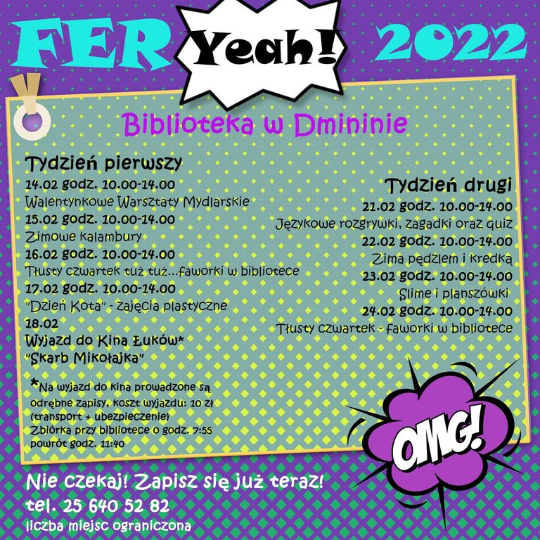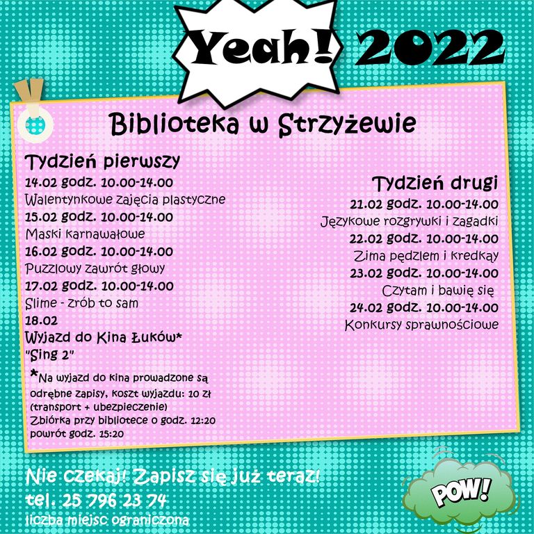 Językowe rozgrywki, zagadki oraz quiz, Zima pędzlem i kredką, Slime i planszówki , Tłusty czwartek - faworki w bibliotece