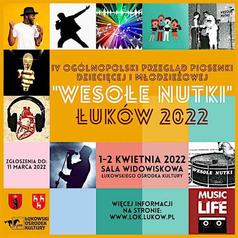 Łukowski Ośrodek Kultury rozpoczął przyjmowanie zgłoszeń do IV Ogólnopolskiego Przeglądu Piosenki Dziecięcej i Młodzieżowej „Wesołe Nutki” Łuków 2022. Przyjmowanie zgłoszeń potrwa do 11 marca.