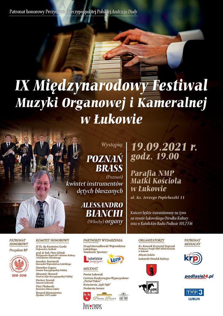Patronat honorowy nad IX Międzynarodowym Festiwalem Muzyki Organowej i Kameralnej w Łukowie objął Prezydent Rzeczypospolitej Polskiej Andrzej Duda. W skład Komitetu Honorowego wchodzą: JE Ks. Bp Kazimierz Gurda Ordynariusz Siedlecki, Wicepremier Rządu Rzeczypospolitej Polskiej i Minister Kultury i Dziedzictwa Narodowego Piotr Gliński, Marszałek Województwa Lubelskiego Jarosław Stawiarski, Senator Rzeczypospolitej Polskiej Stanisław Gogacz, Poseł na Sejm Rzeczypospolitej Polskiej Sławomir Skwarek, Starosta Łukowski Dariusz Szustek, Burmistrz Miasta Łuków Piotr Płudowski oraz Dyrektor TVP3 Lublin Ryszard Montusiewicz.
