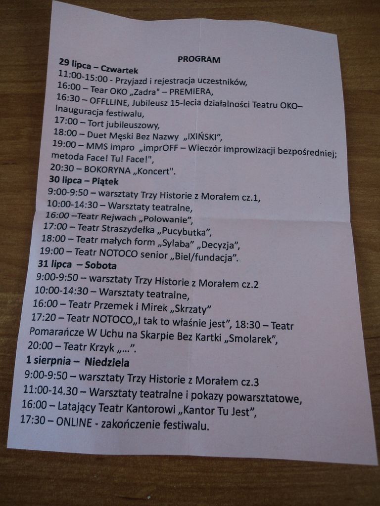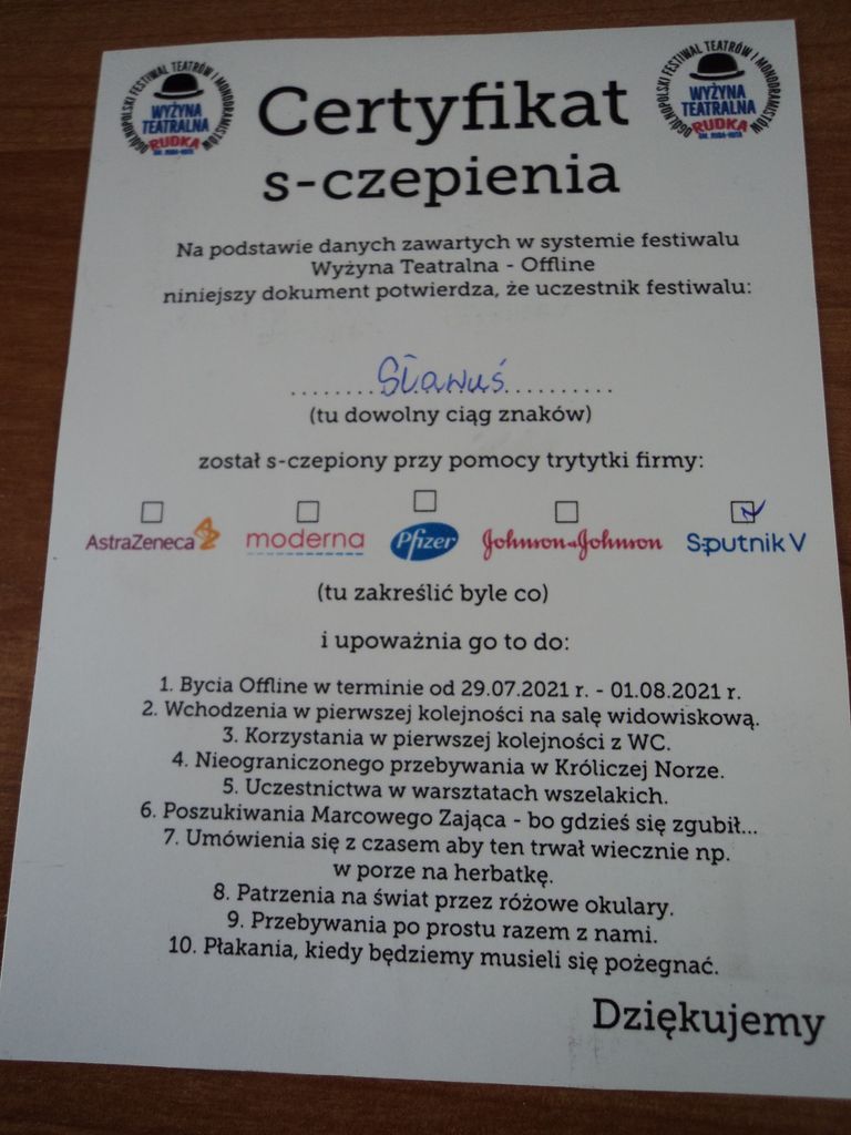Dziękujemy organizatorom za tę niesamowitą podróż od 29 lipca do 1 sierpnia w „krainę czarów”! Wierzymy, że nam się udało wspólnie zaczarować pandemiczną rzeczywistość. A z okazji jubileuszu życzymy dalszej kreatywności aktorom Teatru OKO i Marcinowi Woszczewskiemu, dla którego sztuka teatru i teatralni ludzie są „oczkiem” w głowie. Wystawiamy też najlepszą notę władzom Gminy Ruda-Huta za długotrwałą i wyrazistą miłość do Melpomeny oraz teatralnej braci! Wasze wydarzenie integruje nas, jest inspirujące i kulturotwórcze, a teraz nawet leczy. Gratulujemy.