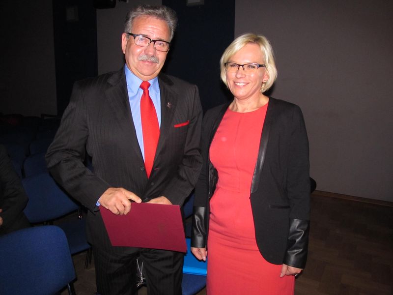 Jubileuszowe uroczystości były okazją nie tylko do wspomnień, ale również do wręczenia nagród. Indywidualną nagrodę II stopnia, nadaną przez Centrum Edukacji Artystycznej – jednostkę, która w imieniu Ministerstwa Kultury i Dziedzictwa Narodowego nadzoruje szkołę, otrzymał Jarosław Bacewicz. Wręczyła mu ją Beata Syczuk, wizytator z CEA (na zdjęciu). Dyrektor szkoły Tomasz Wojtaś wręczył też nagrody z okazji jubileuszu. Otrzymali je: Natalia Pomiłujko, Andrzej Przeździak, Waldemar Kamola, Agnieszka Goławska, Zbigniew Czuryło, Stanisław Włodarczyk, Jarosław Bacewicz, Irena Rybicka oraz Paweł Sulej.