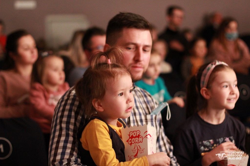 Sala widowiskowa Łukowskiego Ośrodka Kultury wypełniła się najmłodszymi widzami, którzy przyszli aby obejrzeć przygody dwóch pingwinów Bolka i Loli. Przedstawienie odbywało się w ramach cyklicznej imprezy „Niedziela z teatrem”.