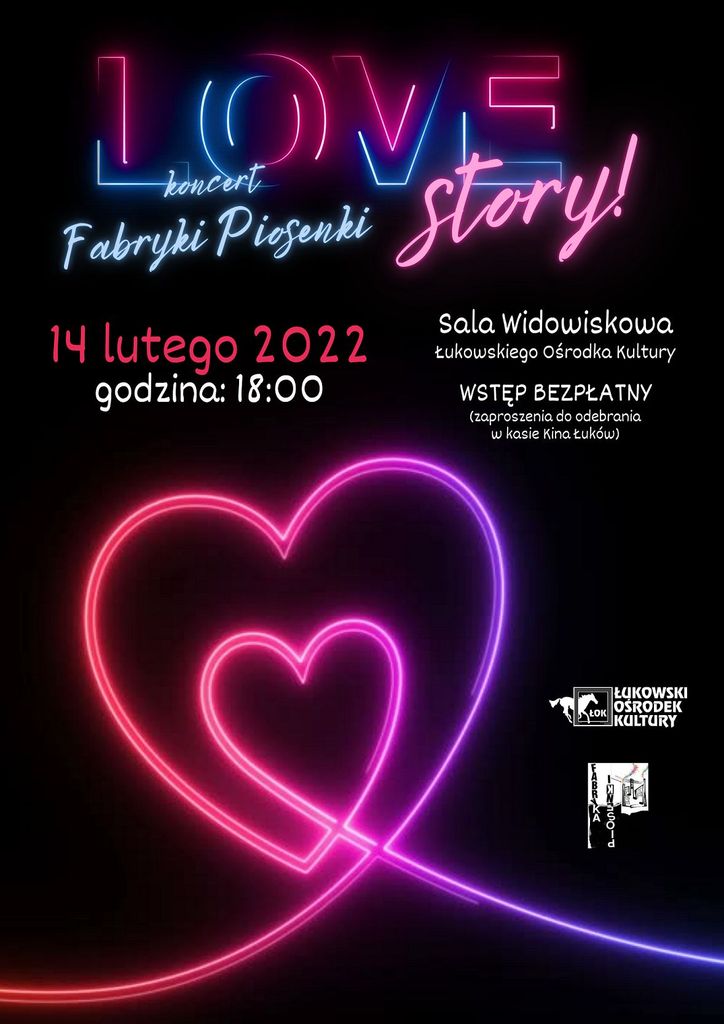 Fabryka Piosenki Łukowskiego Ośrodka Kultury przygotowała specjalny koncert na walentynkowy wieczór. Będzie nosił tytuł „LOVE Story”. Usłyszymy na nim najpiękniejsze piosenki o miłości.
