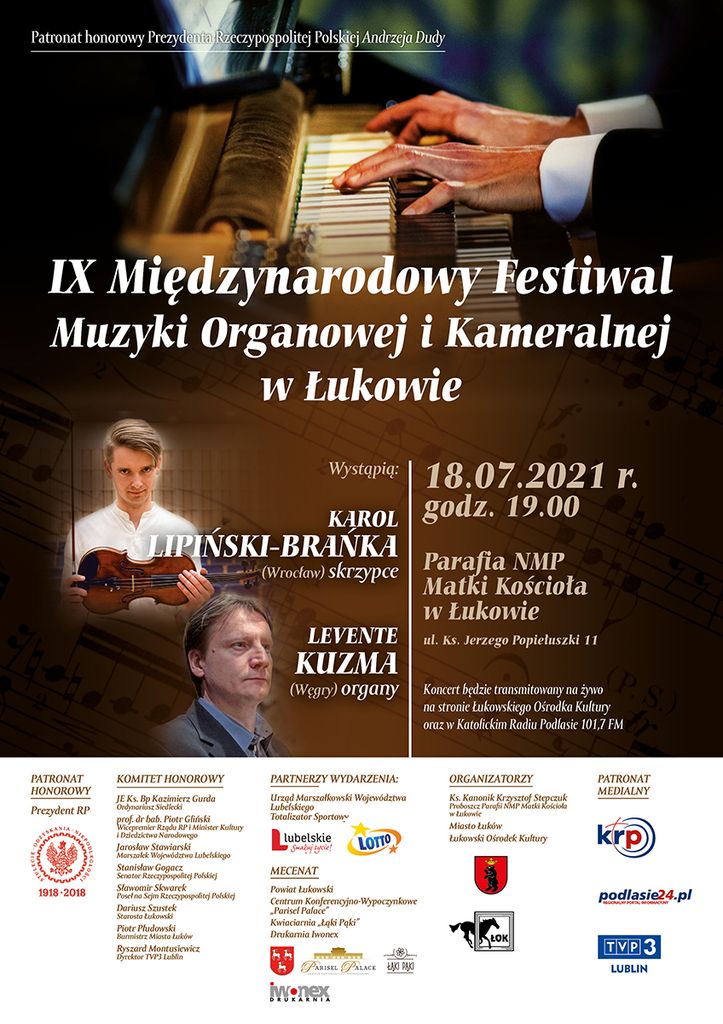 Partnerami IX Międzynarodowego Festiwalu Muzyki Organowej i Kameralnej w Łukowie są: Totalizator Sportowy LOTTO oraz Województwo Lubelskie „Lubelskie Smakuj Życie!”.