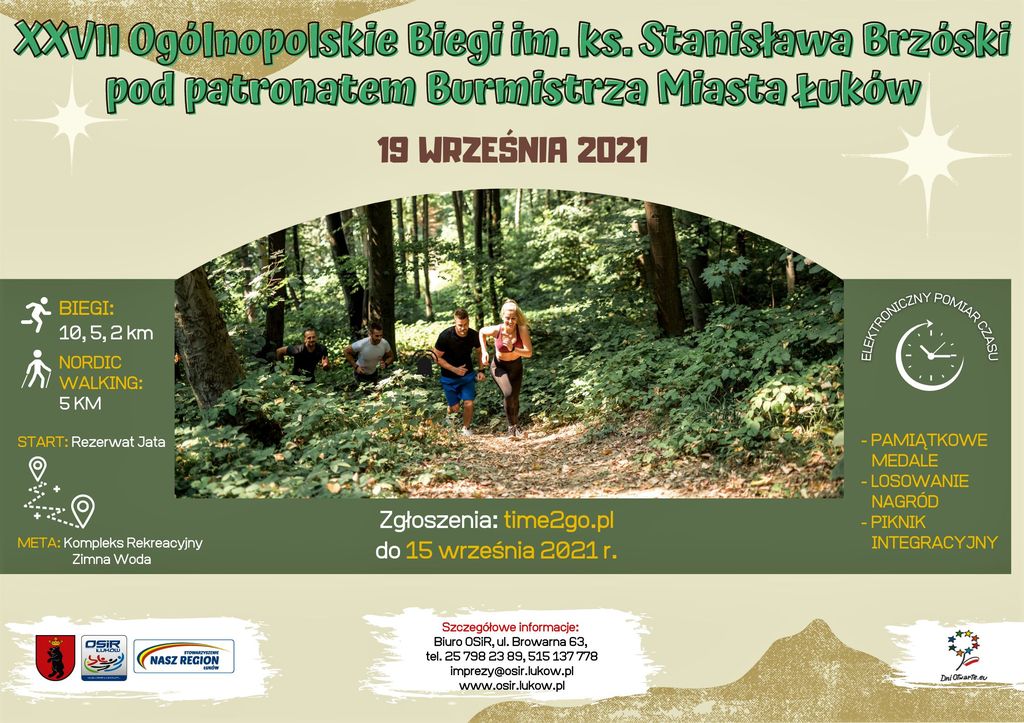 Niedziela 19 września rozpocznie się od XXVII Ogólnopolskich Biegów im. ks. Stanisława Brzóski. Zawodnicy będą pokonywać dwie trasy o długości 5 i 10 kilometrów. Początek imprezy godzina 11.00.