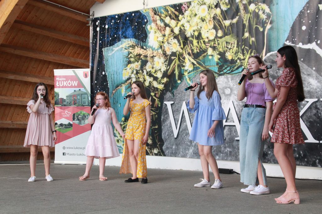 Podczas sobotniego wieczoru na scenie zaprezentowały się wokalistki z Fabryki Piosenki, które pod kierunkiem Edyty Wójcik przygotowały mini koncert „Wakacje tuż, tuż”. Był też występ zespołu „Niezapominajki” z Dminina. Można również było posłuchać zdolnych i nagradzanych recytatorów z Łukowskiego Ośrodka Kultury, podopiecznych Sławomira Żyłki.