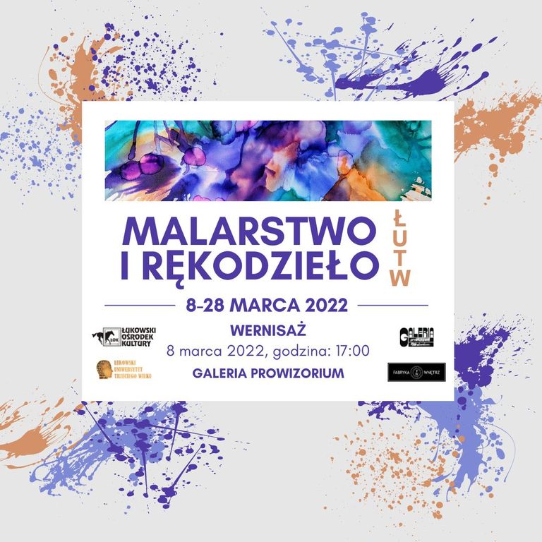 Dorobek artystyczny słuchaczy Łukowskiego Uniwersytetu Trzeciego Wieku będzie można oglądać na wystawie zatytułowanej „Malarstwo i rękodzieło ŁUTW”. To wystawa przygotowana w związku z obchodami Międzynarodowego Dnia Kobiet. Na wystawie zobaczymy prace, które powstawały podczas zajęć plastycznych, jakie odbywały się w Łukowskim Ośrodku Kultury. Dzieła tworzone były pod czujnym okiem instruktorów: Eweliny Szałkiewicz i Anny Karolkiewicz.