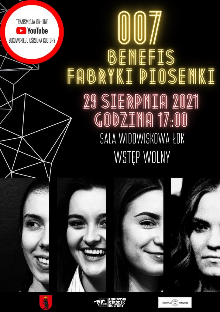 W niedzielę o godzinie 17.00 ŁOK zaprasza do sali widowiskowej na koncert „007 – Benefis 2021 Fabryki Piosenki”, podczas którego wystąpią Marta Skurka, Anastazja Klimiuk, Klaudia Borejko i Sylwia Purzycka. Zaśpiewają piosenki z filmów o Jamesie Bondzie. I będzie to ich pożegnalny koncert. Dziewczyny skończyły właśnie naukę w szkołach średnich i wybierają się na studia.