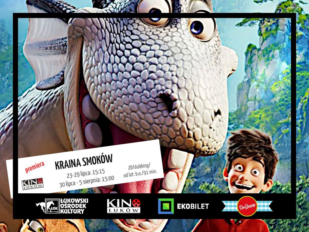 Seanse „Kraina Smoków” w Kinie Łuków w dniach 23 - 29 lipca o godzinie 15.15. Czas: 1 godz. 31 minut.