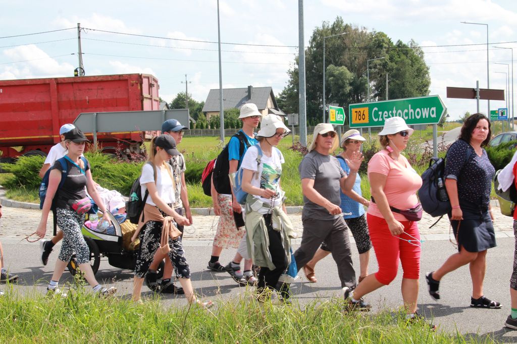 Pątnicy 41. Pieszej Pielgrzymki Podlaskiej na Jasną Górę zobaczyli dziś już po raz pierwszy drogowskaz z napisem Częstochowa. Dziś również jest ten dzień, kiedy na placu przed kościołem w gościnnym Strawczynie nie zabrakło śpiewu i tańca.