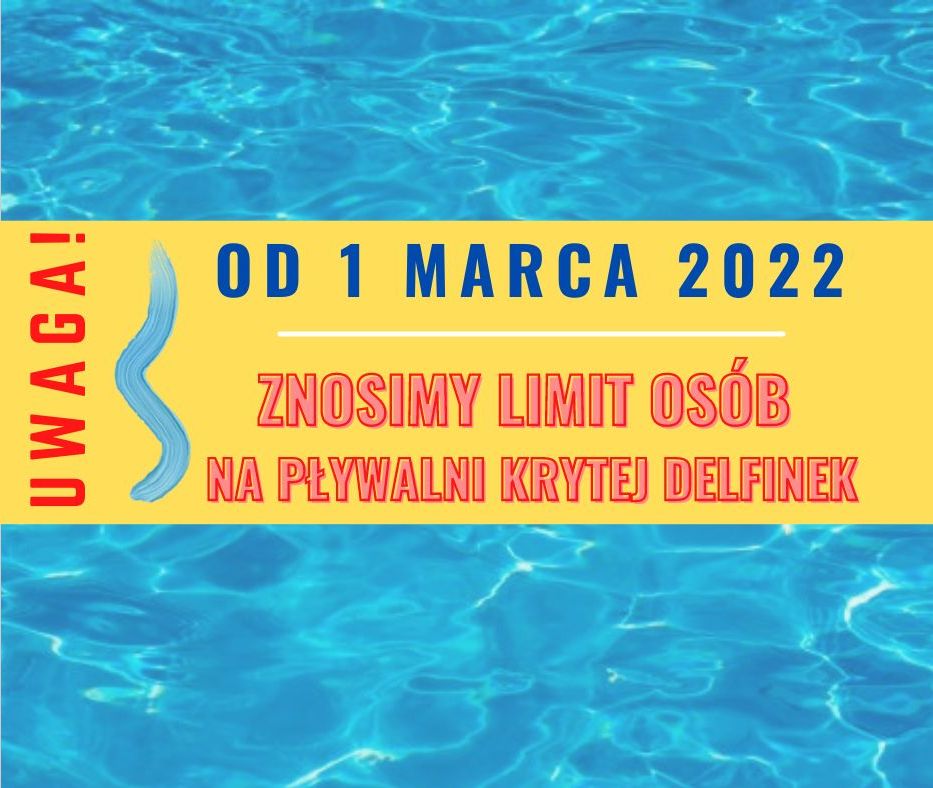 Ośrodek Sportu i Rekreacji w Łukowie informuje o zniesieniu limitu osób, które mogą przebywać jednocześnie na krytej pływalni „Delfinek”. Decyzja ta będzie obowiązywać od wtorku, 1 marca.