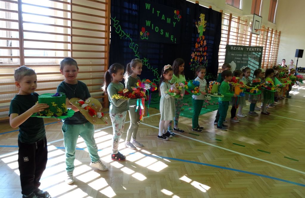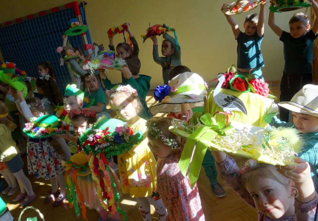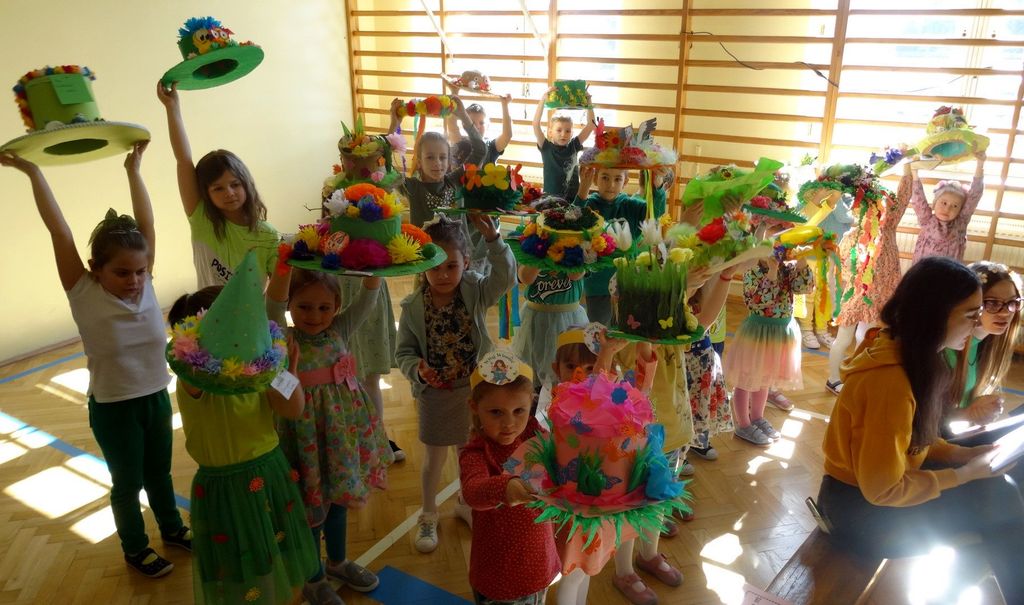 Wszystkie przedszkolaki wraz z rodzicami zostały zaproszone do udziału w konkursie „Kapelusz Pani Wiosny”. Ich zadaniem było wykonanie kapelusza, który nosi Pani Wiosna. „Mali Projektanci wykazali się niezwykłą kreatywnością. Wszystkie prace były piękne, oryginalne i kolorowe, a dzieci miały okazje zaprezentować je na apelu z okazji Pierwszego Dnia Wiosny” - czytamy w nadesłanej do nas relacji.