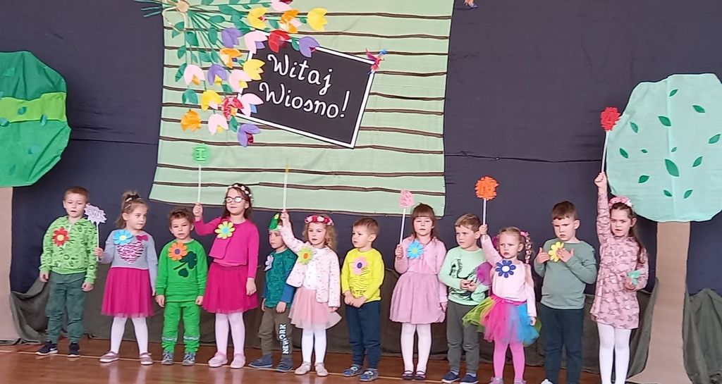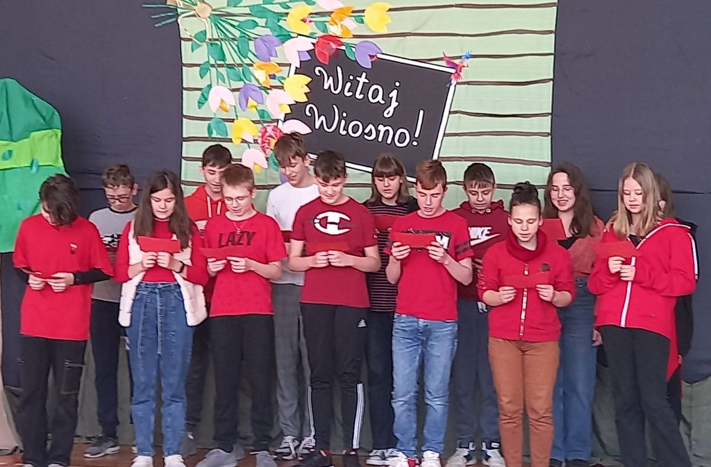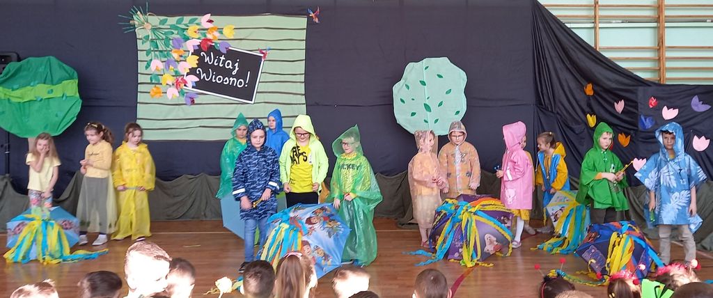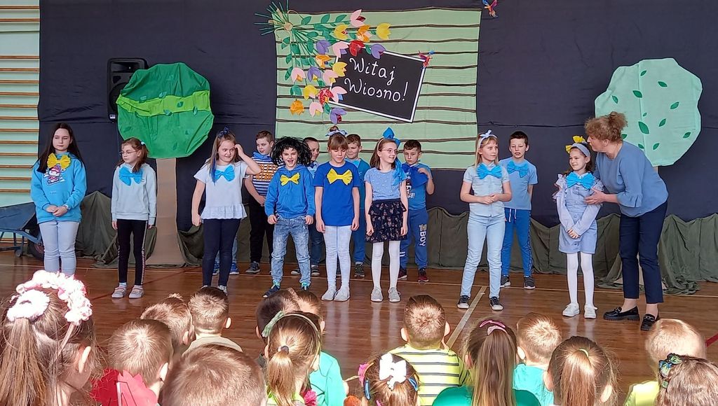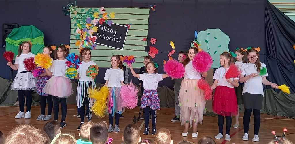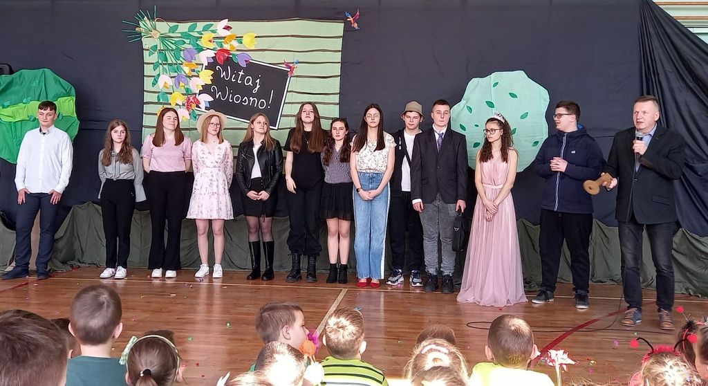 Z okazji pierwszego dnia wiosny w szkole odbyła się też prezentacja wszystkich oddziałów przedszkolnych i klas. Uczniowie tańczyli, śpiewali piosenki, recytowali lub inscenizowali wiersze, a na finał odbył się pokaz wiosennej mody w wykonaniu uczniów najstarszej klasy.