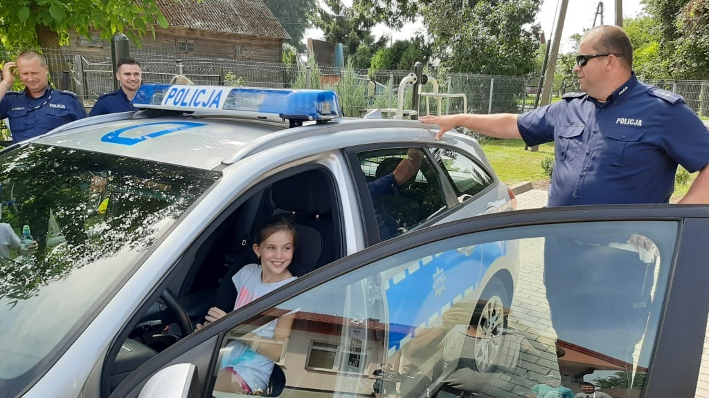 Po pokonaniu około 20 km trasy, uczestnicy Rowerowej Akademii Miejsc Atrakcyjnych wysłuchali pogadanki prewencyjno - edukacyjnej na temat bezpieczeństwa ruchu pieszego i rowerowego w tak szczególnym miejscu, jakim jest wieś. Przeprowadził ją asp. Waldemar Komsta z Komendy Powiatowej Policji w Łukowie, który zaprezentował także podstawowe wyposażenie radiowozu policyjnego do kontroli pojazdów na drodze. Pozostali obecni funkcjonariusze policji: mł. asp. Aldona Bartosiewicz, asp. Adrian Gryczka i asp. szt. Daniel Genca zademonstrowali sygnały dźwiękowe i ostrzegawcze wydawane przez radiowóz policyjny. Uczestnicy wycieczki mogli sobie także zrobić w radiowozie pamiątkowe zdjęcie.