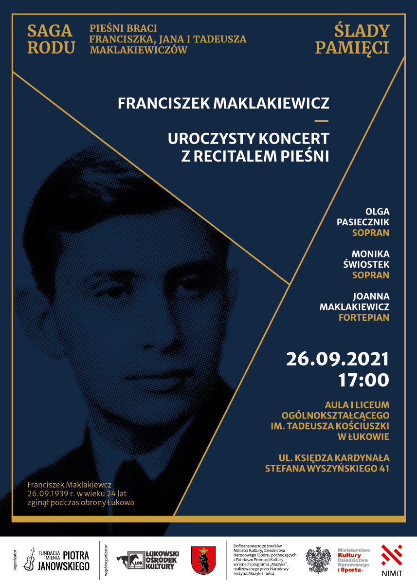 Franciszek Maklakiewicz pochodził z Mszczonowa. Był kompozytorem. W pierwszych dniach II Wojny Światowej zaciągnął się na ochotnika do Wojska Polskiego. Podczas walk w obronie linii kolejowej Dęblin – Łuków został ranny. Zmarł 26 września 1939 roku w łukowskim szpitalu. Miał zaledwie 24 lata. Pochowany jest na cmentarzu parafialnym w Łukowie. Jego historię opisywaliśmy dla Państwa rok temu: http://www.podlasie24.pl/lukow/kultura/lukow-wspomnienie-kompozytora-2fc0a.html.