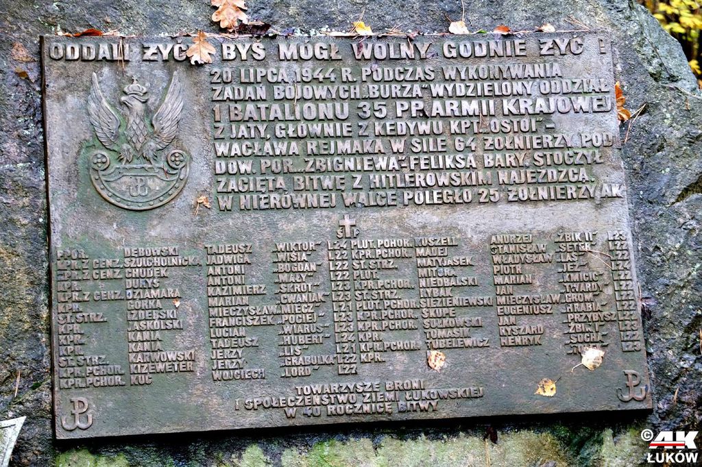 Na trzy dni przed wyparciem niemieckich wojsk z Łukowa, doszło do tragicznej w skutkach bitwy pod Gręzówką. 20 lipca 1944 roku na szosie Łuków - Siedlce w lesie Kryńszczak, podczas wykonywania zadań bojowych w ramach akcji „Burza”, wydzielony Oddział I Batalionu 35 Pułku Piechoty Armii Krajowej z Jaty, głównie z Kedywu kpt. Wacława Rejmaka „Ostoi”, w sile 64 żołnierzy dowodzonych przez por. Feliksa Barę ps. „Zbigniew”, stoczył zaciętą bitwę z hitlerowskim najeźdźcą. W nierównej walce poległo 25 żołnierzy Armii Krajowej. Rannych Niemcy dobijali. Do Łukowa zabrali ranną sanitariuszkę „Wisię” i dwóch rannych żołnierzy z Jaty. Cała trójka zginęła.