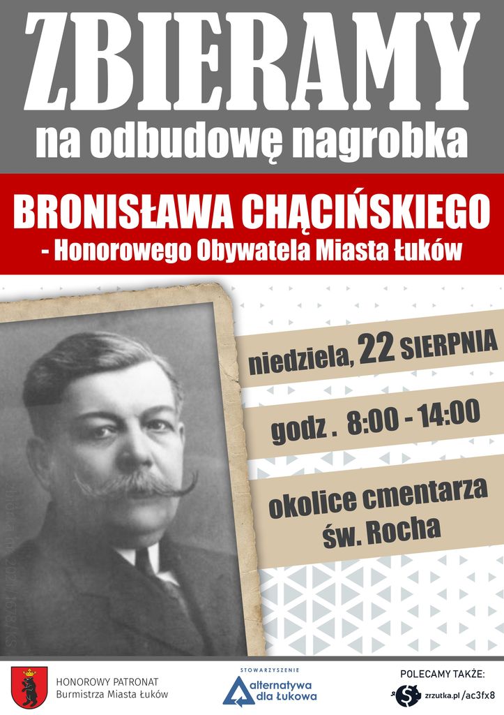 Kwestę organizuje Stowarzyszenie Alternatywa dla Łukowa, które chce w ten sposób włączyć się w akcję zbiórki funduszy, którą już od dłuższego czasu prowadzi społeczność Szkoły Podstawowej nr 4 w Łukowie, której patronem jest właśnie Bronisław Chąciński. Zbiórka pieniędzy odbędzie się w niedzielę 22 sierpnia w godzinach od 8.00 – 14.00. Udział w kweście zapowiedzieli już burmistrz Piotr Płudowski, który objął honorowy patronat nad przedsięwzięciem, a także zastępca burmistrza Mateusz Popławski. Środki zebrane w tym dniu zostaną przekazane przedstawicielom Szkoły Podstawowej nr 4.