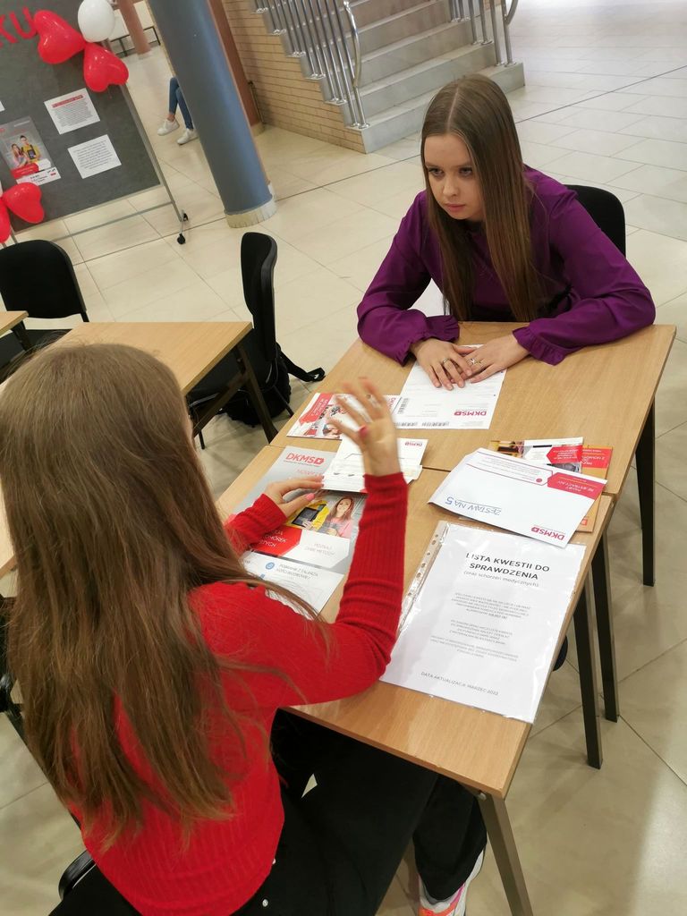 W Polsce co 40 minut ktoś dowiaduje się, że choruje na białaczkę. Tę diagnozę słyszą rodzice małych dzieci, młodzież, dorośli. Bez względu na wiek – każdy może zachorować. Na szczęście każdy może też pomóc. Dla wielu chorych jedyną szansą na życie jest przeszczepienie szpiku lub komórek macierzystych od niespokrewnionego dawcy. Aby zarejestrować się w bazie potencjalnych dawców trzeba być osobą dorosłą, w wieku od 18 do 55 lat. Rejestracja polega na pobraniu z wnętrza policzka materiału biologicznego - wymazu ze śliny i wypełnieniu formularza z danymi osobowymi i kontaktowymi. Można to zrobić nie tylko podczas takich akcji jak ta, która odbyła się w I LO, ale również kontaktując się osobiście z fundacją DKMS Polska.