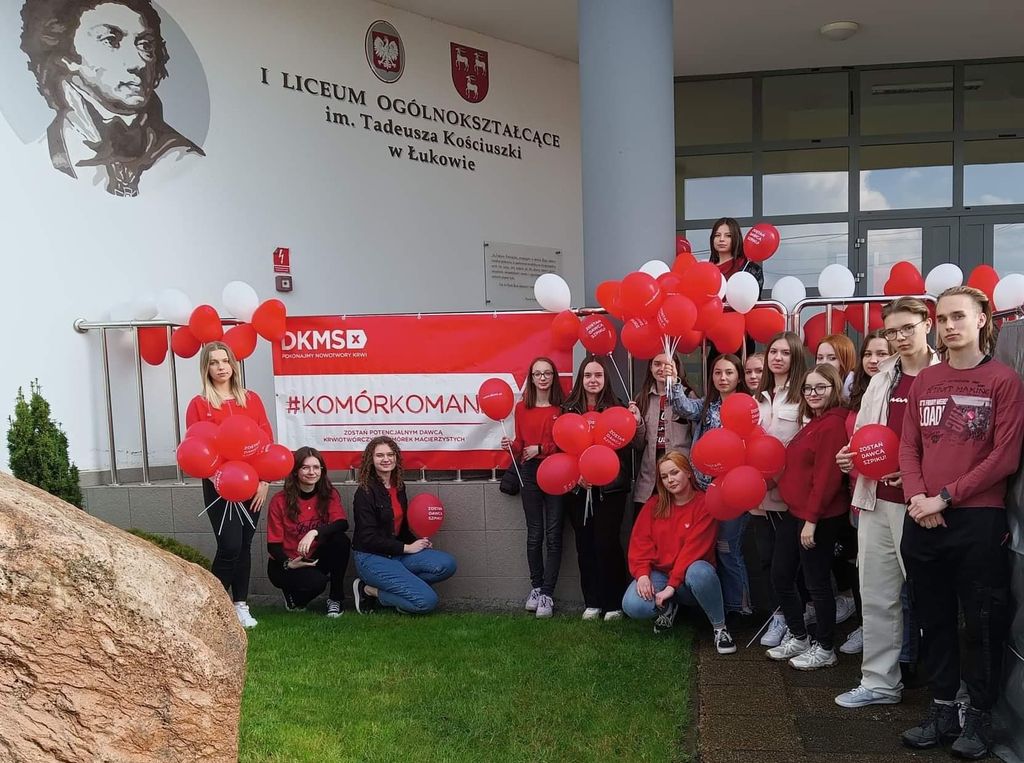Dni Dawcy Szpiku i Komórek Macierzystych organizowane są w łukowskim liceum od kilku lat. Podczas szkolnych akcji zarejestrowało się już ponad tysiąc osób, a około 30 z nich oddało już szpik lub komórki macierzyste. Po przerwie spowodowanej pandemią w czwartek 28 kwietnia Samorząd Uczniowie I LO im. T. Kościuszki wraz z fundacją DKMS Polska zorganizował Dzień Dawcy Szpiku Kostnego. Każdy kto chciał mógł przyjść i zostać potencjalnym dawcą szpiku i komórek macierzystych. Takich osób przyszło 89. „Jesteśmy dumni, bo wiemy, że 89 potencjalnych dawców to 89 szans na życie i zdrowie” - mówi nam Sylwia Szczygielska, nauczycielka I LO, która co roku wspiera uczniów przy organizacji Dnia Dawcy.