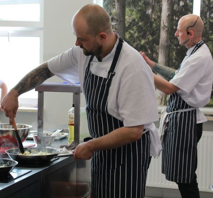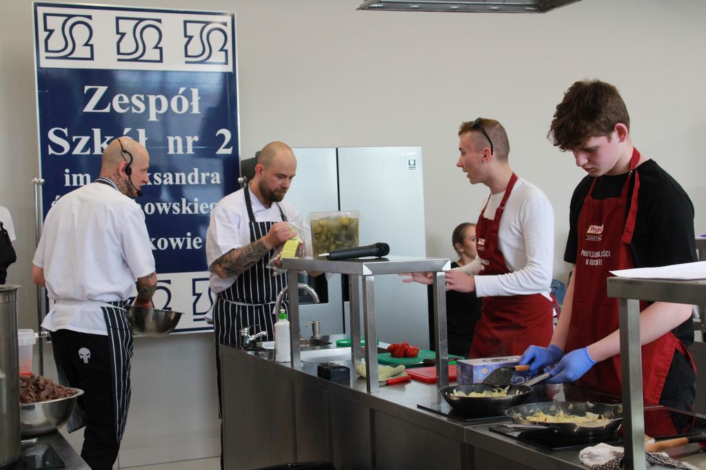 Młodzież z Zespołu Szkół nr 2, która brała udział w warsztatach, miała okazję wspólnie z Arturem i Kamilem odkrywać pasję gotowania i odkrywać smaki dziczyzny. A jest to, jak mówi nam Kamil Gajda, wymagające mięso: „ Dziczyźnie trzeba pomóc przyprawami. Żeby uzyskać naprawdę fajne aromaty trzeba dać przyprawy z lasu, np. rozmaryn i jałowiec. To przyprawy, które rosną w lesie i bardzo fajnie łączą się z dziczyzną”.