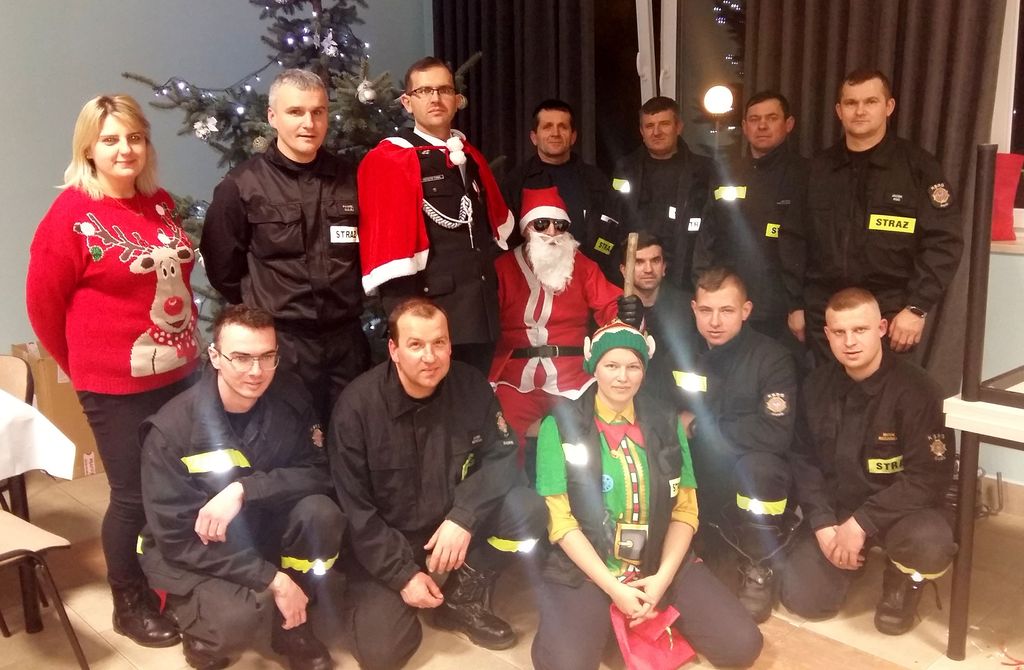 Dzieci przywitał prezes OSP Dąbie druh Krzysztof Fornal. Jak na mikołajki przystało wszyscy uczestnicy zabawy otrzymali mikołajkowe upominki ufundowane przez gminę Łuków, powiat łukowski oraz europosła Krzysztofa Hetmana. Po powitaniu nastąpiła nieoczekiwana zmiana planów, gdyż jednostka OSP Dąbie została wezwana do wypadku drogowego w Dąbiu przy drodze Dąbie – Gręzówka.
